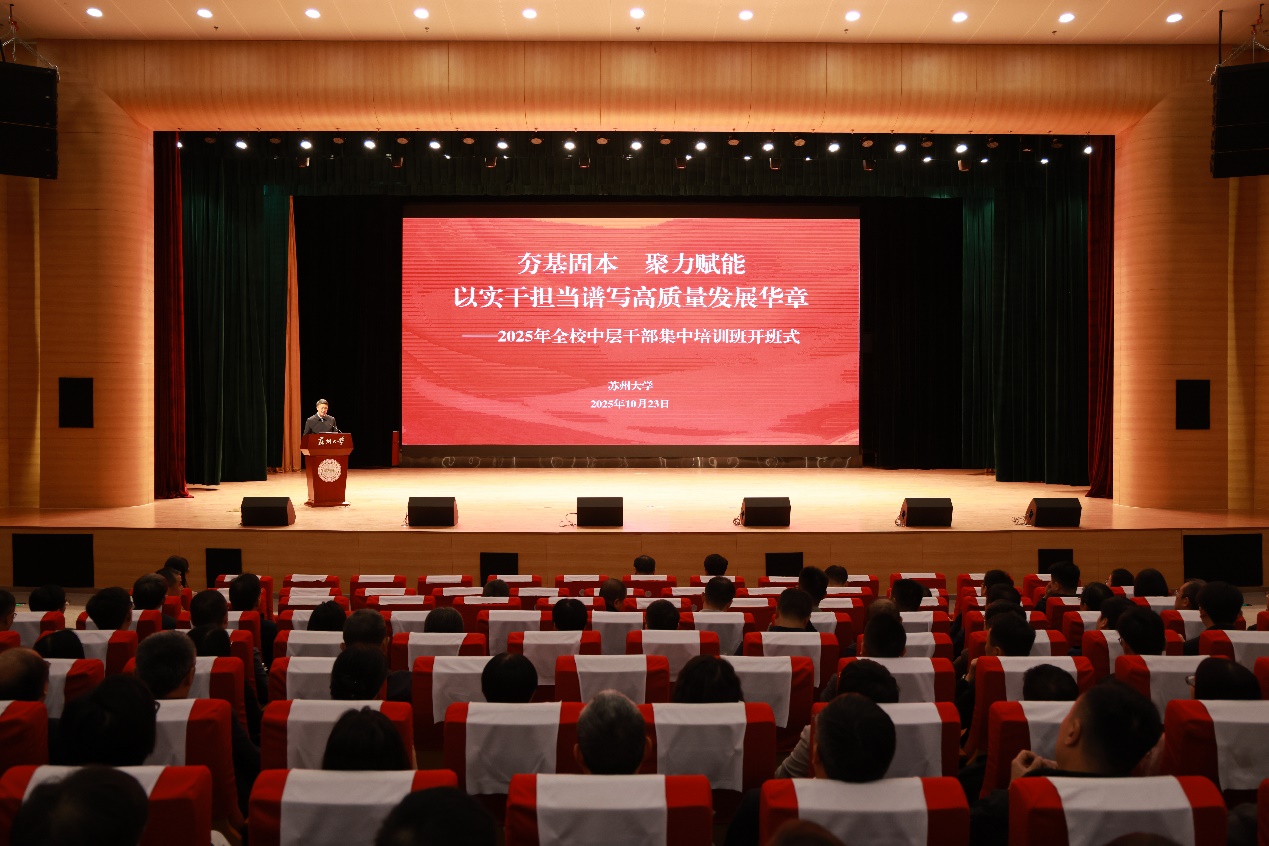 为深入学习贯彻习近平新时代中国特色社会主义思想,贯彻落实党的二十大和二十届历次全会精神,切实提升中层干部政治素质和推进学校高质量发展的能力本领,10月23日至11月14日,我校举办中层干部集中培训班。本次培训以“夯基固本、聚力赋能,以实干担当谱写高质量发展华章”为主题,采用主题教学与分层分类相结合、专题报告与实践研学相融合的模式,实现全校中层干部全覆盖。校党委书记张晓宏出席培训开班式并讲话,校长张桥作首场报告,校党委副书记邓敏主持开班式。