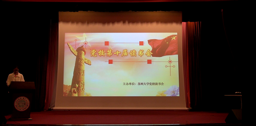 纺织服装工程学院钱飒、附一院谈心、物理科学与技术学院杨庭妍三位同学在典礼现场为学员“开讲了”党校读书会的阅读书目——《苦难辉煌》《激荡十年,水大鱼大》《习近平的七年知青岁月》三本书籍,弘扬经典,传播书香,取得较好的效果。